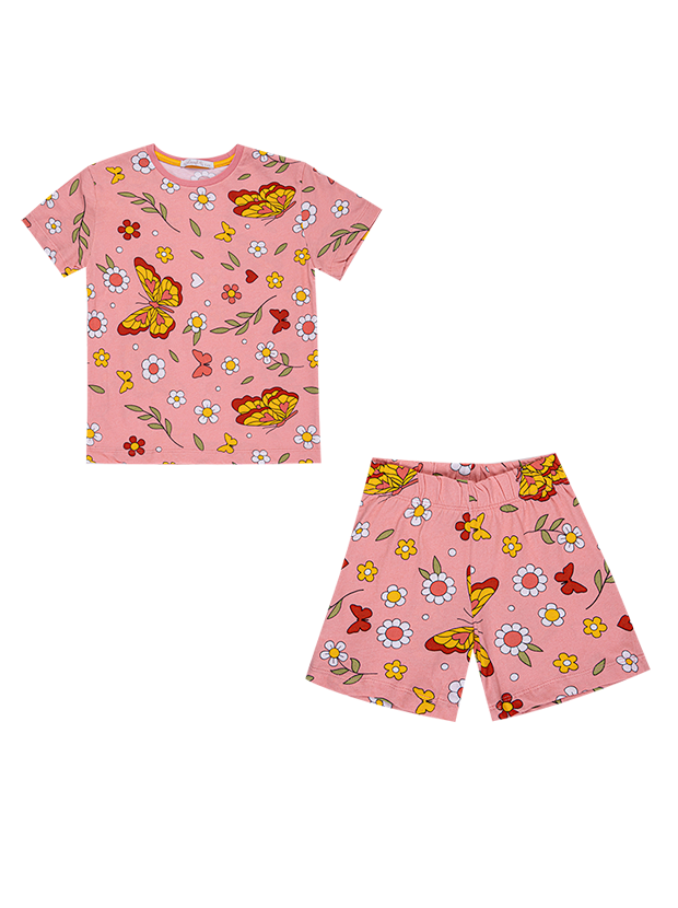تیشرت و شلوارک دخترانه مدل گل و پروانه صورتی