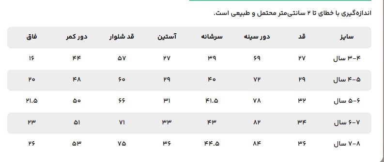 سایزبندی دخترانه